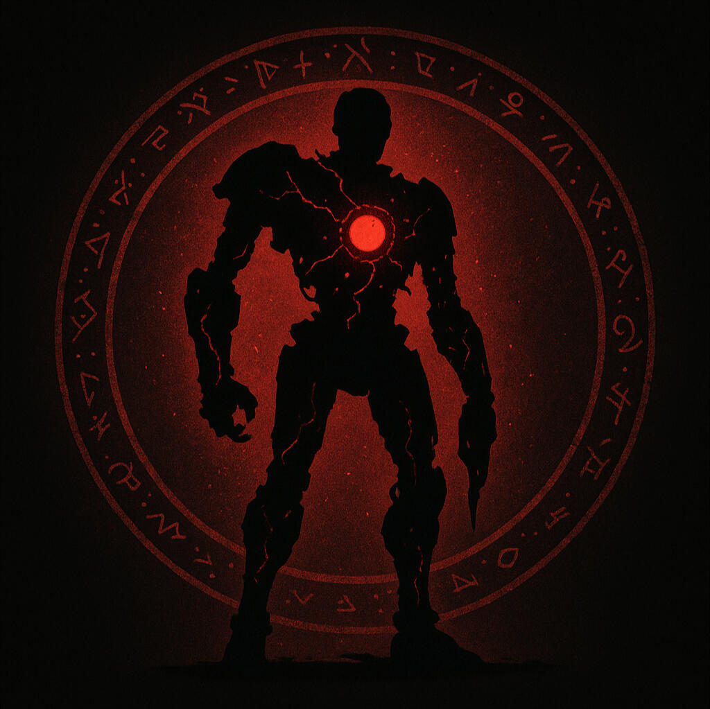 This character is created by the player who is interested in puzzles in rpgs but haven’t quite gotten into the hobby as much as the rest of us. The idea for his character was first just a throwaway joke that he wanted to play “HK-47” known from the “knights of the old republic”- game, but that idea was further developed into an actual concept. This character is a former part of the staff in Chromeria, but his control disc has ben altered by the attack and now he expressess free will. The drawing below is made by this player.